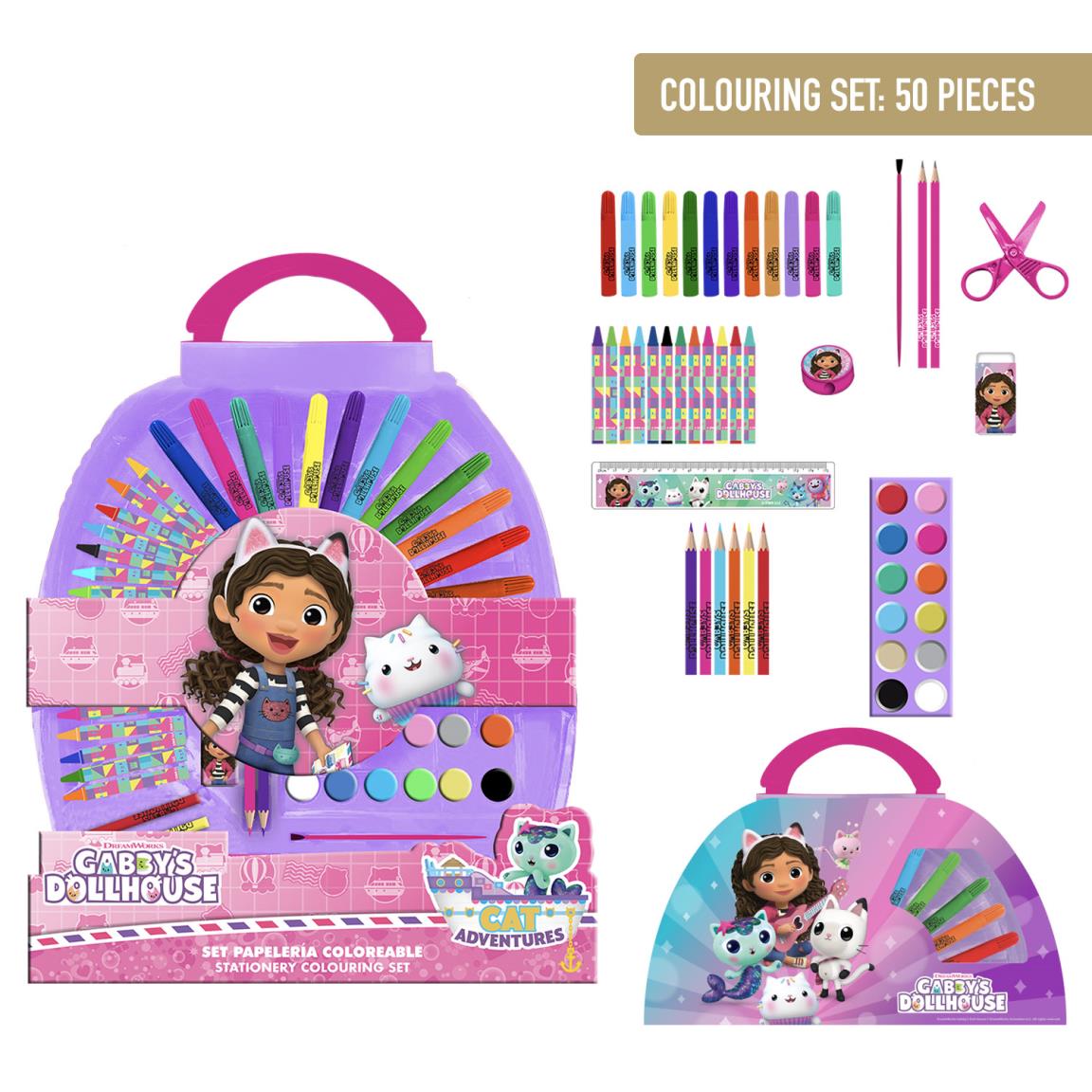 SET PAPELERÍA COLOREABLE 50 PIEZAS GABBY´S DOLLHOUSE